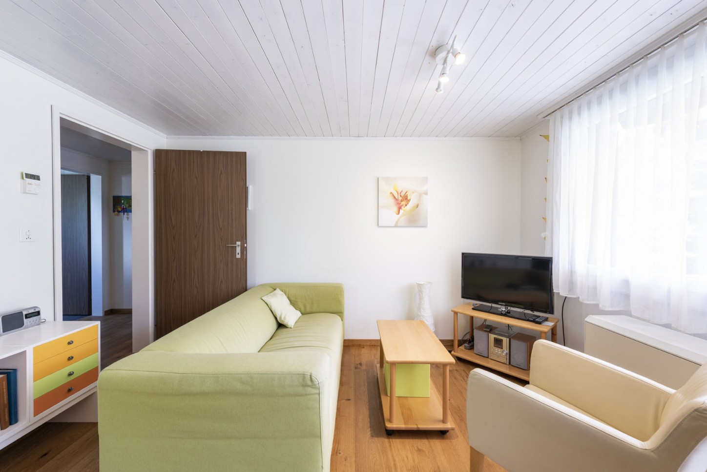 Die Ferienwohnung ist im Chalet-Stil und heimelig ausgestattet.